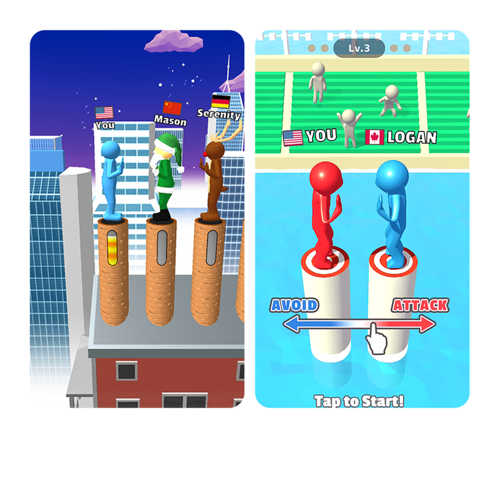 プロデューサー 1名 / エンジニア 1名 / デザイナー 1名 担当:デザイン全般、モデル作成、広告動画作成 使用ツール : AdobeCC / Blender / Unity キャラクターと全体的な雰囲気をアプリランキングのトレンドのものを踏襲し、言語を極力使用しないでも伝わるような作りとなっています。ダウンロード数、ユーザー残存率などをみながら細かい動きの調整やUI、オブジェクトなどの改修を繰り返し、売り上げに繋げました 累計1300万DL