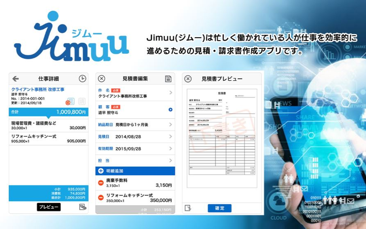 見積書、請求書をスマホで作成、メール送信や郵送ができる無料から使えるスマホアプリ。 AppStore、Playストアで1位を獲得。