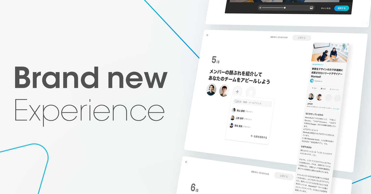 アクティベーション向上の目的のもと、定量・定性分析からコンセプト設計、ユーザーテストを行い確証度を高めて方針を定め Wantedly がやる意義を明確に。具体施策を実行できる状態に持っていく。PdM・プロダクトデザイン担当。