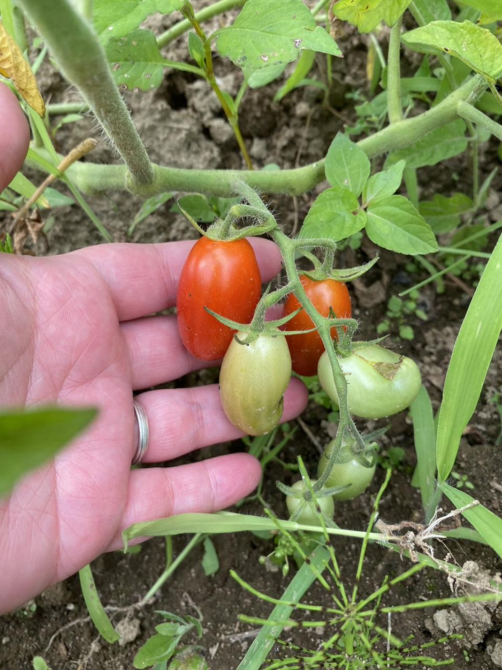 ミニトマトのアイコです! 雑草が生えているのは、抜いてしまうと土が乾燥してしまうから。適度な雑草は土を保護してくれるんですよ^^