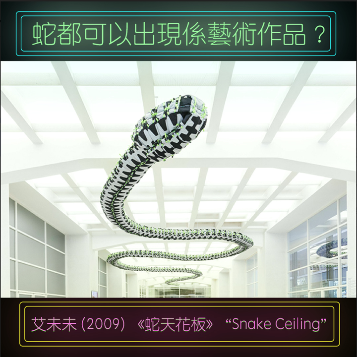 The four images were designed to post on the Instagram (@hkafyfs) and Facebook pages (@HKAFYFS) of the Outreach Department of Hong Kong Arts Festival Society. The goal of the publication was to arouse people's attention to the everyday objects that can be transformed to be artefacts by creative minds of artists. Along with the texts, these images are discussing how snakes can be thematised in artworks, what impacts the technology can bring on the aesthetic and sensory experience of the audiences, what is the story behind Xu Bing's created "Cigarette Carpet" and how the Augmented Reality (AR) inventions can be applied on an exhibition.