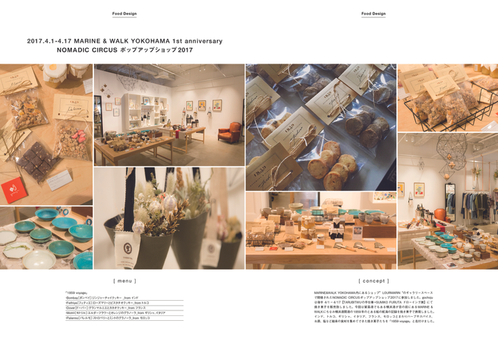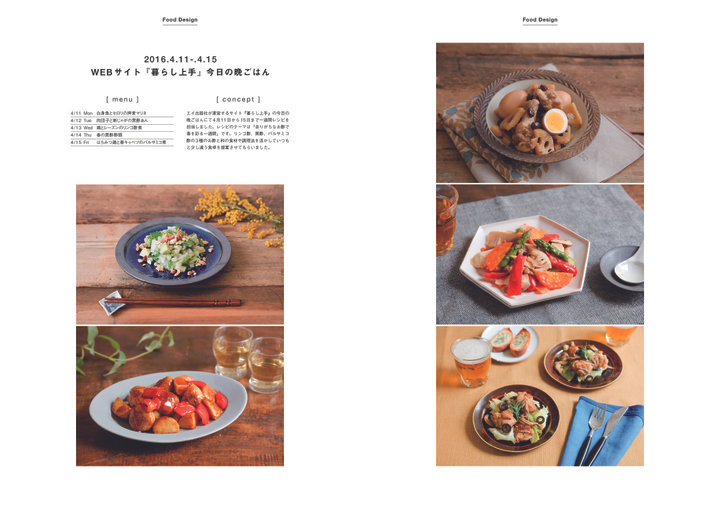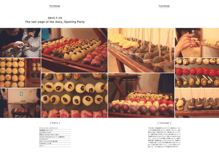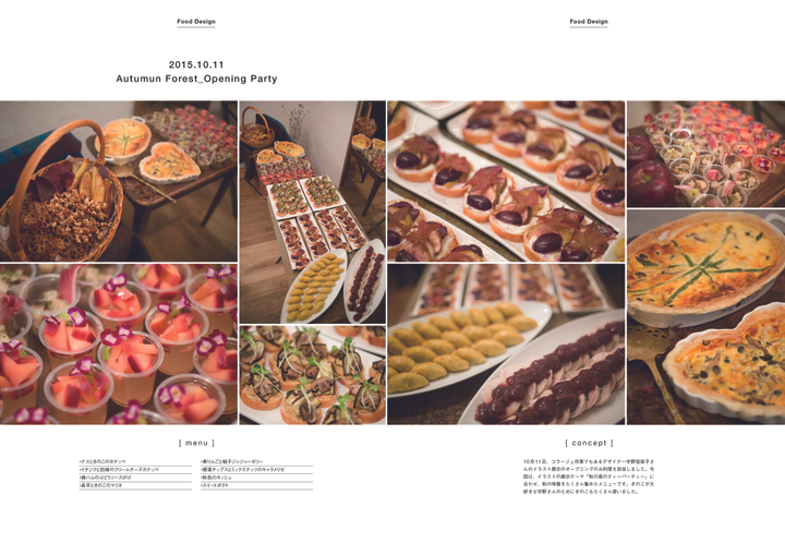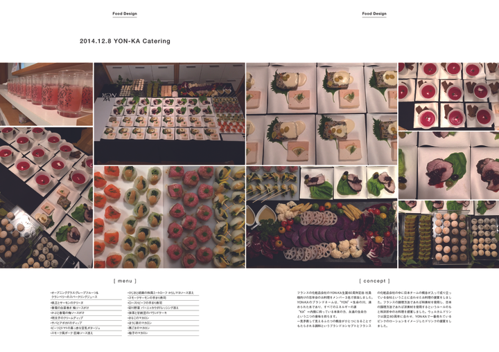 食とデザインを軸とした活動。 ・地域、国、食品メーカーなどの特産品や加工品を使用したレシピ提案とその料理を食べてもらう場作り。新しい食べ方と従来の調理方法のものを消費者に実際食べてもらい、購入を促しその地域に足を運んで貰えるようにする。