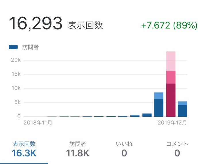 2ヶ月でPV数を上げたグラフです。 ※12月5日時点