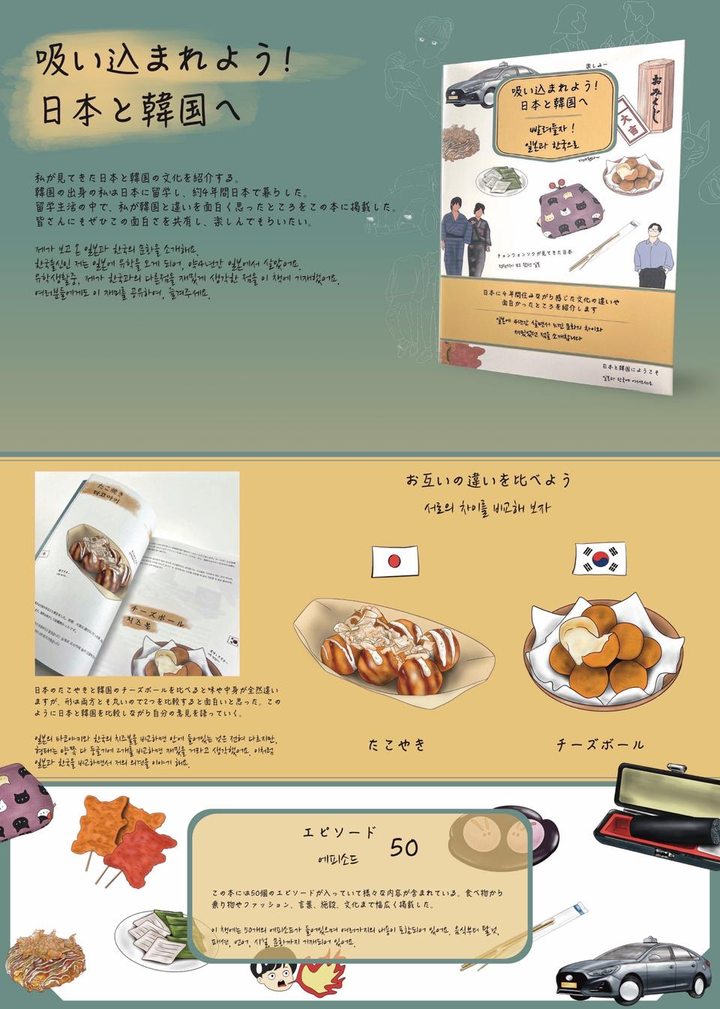 日本に留学して以来、韓国と日本の文化の違いの中で、特に面白かったり驚いたりした点を集めて、一冊の本、しおりとして制作しました。