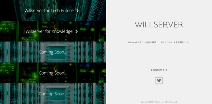 WilserverのWebサイトをリニューアル。 Webデザインから、フロントまでのコーディンクを担当。 CSSの拡張言語であるSCSSを取得するため、独学しながら制作。 Wilserverのサービスの性質上、モバイルユーザーよりPCユーザーの方が多いため、ベースはPC向けで制作しているが、当たり前だがレスポンシブデザインも採用しているためモバイルユーザーにも対応している。 PCのHD対比画面で閲覧すると、ワンページのフラットデザインになるが、モバイルになるとスクロール型のワンページデザインに変形する機構を独自に制作した。 UXUI向上のため、インタラクションデザインを搭載しようとしたが、変形機構搭載の影響で拡張性を失っており断念、次回以降の開発の際はイントラクティブデザイン込みのWebデザインの制作をしようと考えている。