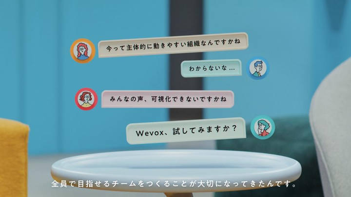 組織開発プラットフォーム”Wevox”のWebCMを制作しました。 監督として企画構成から撮影ディレクション、編集とモーションデザインを担当しました。