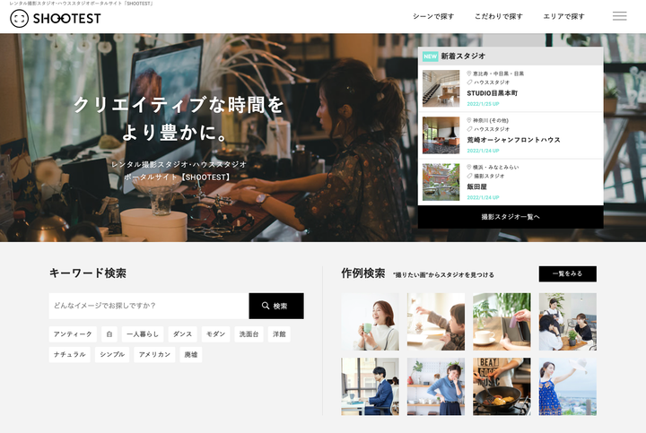 新規事業開発として、撮影スタジオ・ロケ地ポータルサイト「SHOOTEST(しゅーてすと)」の企画立案から立ち上げを行いました。 立ち上げ後は、プロダクトマネージャーとして事業推進。