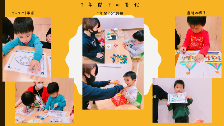リハビリ職、作業療法士って病院や高齢者や障害者・障害児の分野にかかわる人でないとなかなか馴染みのない職業ですよね。 大学や専門学校を出た新卒の人たちはまず病院に就職するのがスタンダードなのだとか。 病院で医師の指示のもとでリハビリをするのが仕事。 だから障がい児童の療育分野にはほとんど流れてこない。 けど、専門学校に入りたての頃のアンケートでは「子どもに関わりたい!」と希望する人が多いのだとか。3年間の勉強の中で療育分野は就職先から除外されてしまうんだね、、、 なんでか? まず①給料面。病院の方が明らかに多い・・・。 ②そもそも医療専門職が配置されていないことが多い業界で先輩がいないので不安。 ③実習先に療育施設が少ない。ほとんどの人は実習先に就職することが多いらしい。。。 これってめっちゃ悪循環と思う。これで永遠に療育業界の医療専門職は増えない。(公共の療育センターにはある程度の人数がいるけど) ちなみにワタシが初めてOT作業療法士に出会ったのは、障害者入所施設で働き始めた時だった。その時夏だったんだけど、施設のテラスで利用者さんたちをプールに入れているお兄さんがいて、ワタシはしばらくの間、その人のことを「プールに入れてくれる係の人」だと思っていた笑 働き出してしばらくして、その人が作業療法士であることに気づいたのだけど・・・。 プール以外にも食事の時に使うスプーンなんかを作ってくれたり、SSTをしてくれたり、吊り下げ遊具で利用者さんを楽しませてくれたり、と作業療法士の仕事って多岐にわたる。 でも、利用者さんを楽しませながら訓練をしていく、ってところは共通なんじゃないかな。 もしワタシがもっと若かったら専門学校に入って勉強して資格取りたいなと思うナンバーワンの資格だ。 ワタシがこう思うに至ったのは、Ecoldで子どもたちの変化を目の当たりにしたからだと思う。 今回載せた写真の左側はちょうど1年前。コロナが流行り出して緊急事態宣言真っ最中の写真。当時、この子はまだペンが持てませんでした。 よく見てもらえるとわかるのですが、すごーく上の方を持ってる。これじゃあ力が入らない、なので軽くぐるぐる〜って書いて、「はいおしまい!」 それじゃあちょっと・・・と思い少しでも手の微細運動になるようシールを貼ってもらっていました。 そこから約1年、週に平均3〜4回・日によって時間は違うけど15分程度のOTの個別訓練を実施。 その中で色々な課題に取り組んできました。 「できないよ〜」と泣いてしまうこともあるけど、最後まで頑張る気持ちが育ちました。 できるようになると、もっと色々なことをしてみたい!というチャレンジ精神も旺盛に! 今では同じ年齢の子よりできることも多くなっています。 右側の写真は現在の様子ですが、クレヨン上手に持てています。また、最近では先生が塗ったものを模倣する、というのにハマっていて上手に同じように塗ることができています。 自信がついたので、みんなの前でしっかり発表もできるようになりました。 写真は載せてないけど、お箸も上手に持てるようになっていました。 4月から幼稚園に入園した彼。2歳でエコルドに通い始めてそのころに比べると本当にできることがたくさん増えたな、と感じます。 ずっと彼をみてきたワタシとしては、とっても感動します。 ご両親の努力はもちろん、エコルドのスタッフたちとの関わりの中でとても成長したと思います。 こういった変化を目の当たりにできるのはこの仕事の醍醐味じゃないかな、と思う。 今回wantedlyで医療専門職を募集するわけですが、なんでこの媒体で募集したかというと、、、 それは業界を変えたい!と思っている人に出会いたいから。 Ecoldはベンチャーです。 なので前例のないことにチャレンジしてくれるのwellcome! 給与面でも初任給は皆一律だけど、結果を出してくれた人には必ず対価を渡しています。←これ福祉業界ではなかなかない。ワタシたちだからできること。 福祉職=低賃金、はもうナンセンスだな、と思う。 あと、福祉は儲からないもの(儲けちゃいけない的なのも)、どうかな、と。 事業所運営で入ってくるお金は公費で限られているので、それ以外のところで稼げばいい。 Ecoldで新しいことにチャレンジしてみたい!こんな人を今回は募集しています!