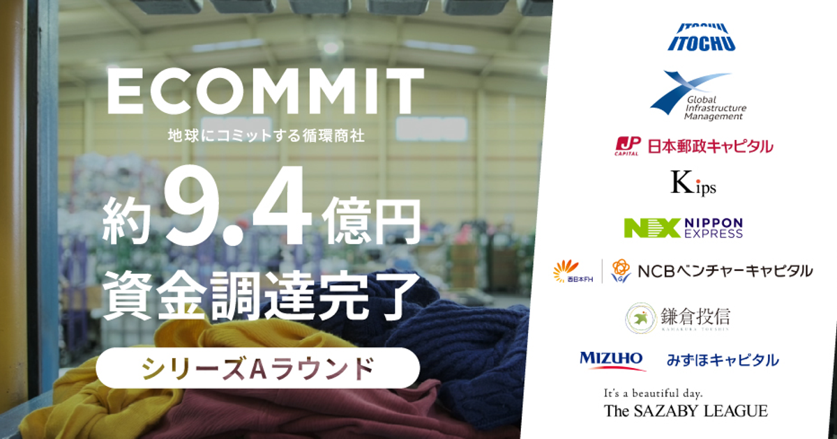 循環商社ECOMMITが、伊藤忠商事およびKipsから初の資金調達を実施 ~3年後の2026年に、日本の廃棄衣類全体の10%にあたる約50,000tの回収を目指し、日本におけるサーキュラー・エコノミーの確立と拡大を図る~