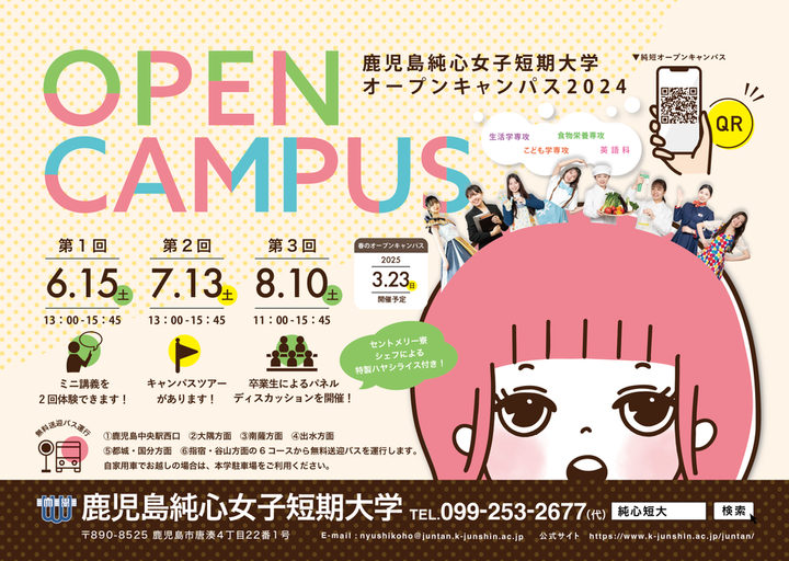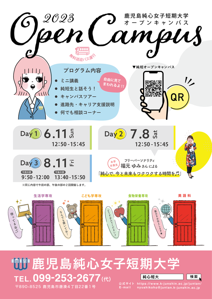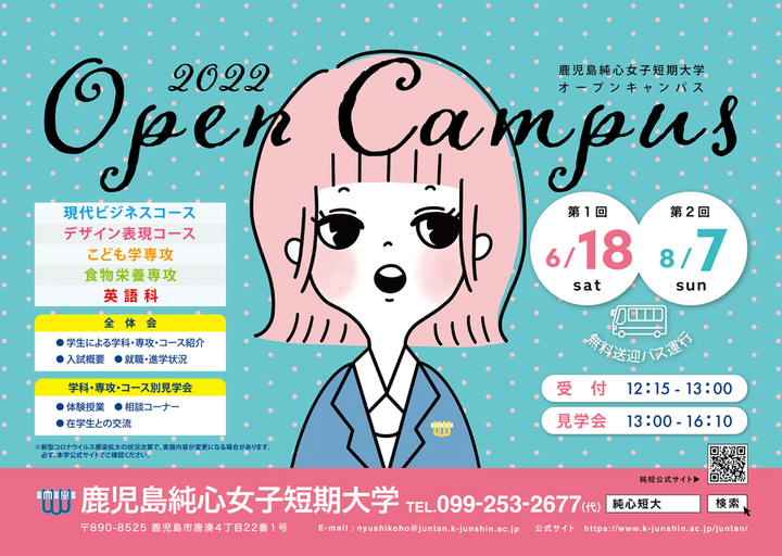 2022年〜2024年 「鹿児島純心女子短期大学」のオープンキャンパスポスターの制作を担当しました。 (デザイン+イラスト)
