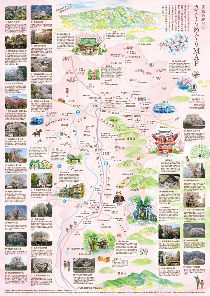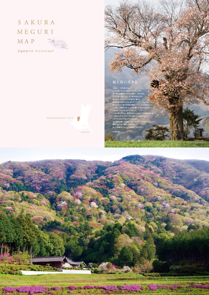 桜川市内の一本桜や神社仏閣など、実際に訪問し確認してその場所をマッピングした。説明文は全てライティング。