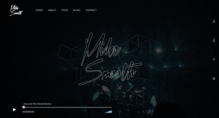 シンプルなオーディオプレイヤー付きのDJのホームページ(React.js)
