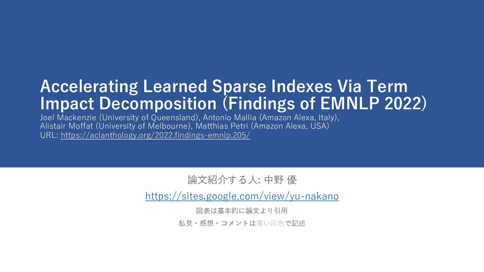 論文紹介: Accelerating Learned Sparse Indexes Via Term Impact Decomposition (Findings of EMNLP 2022)