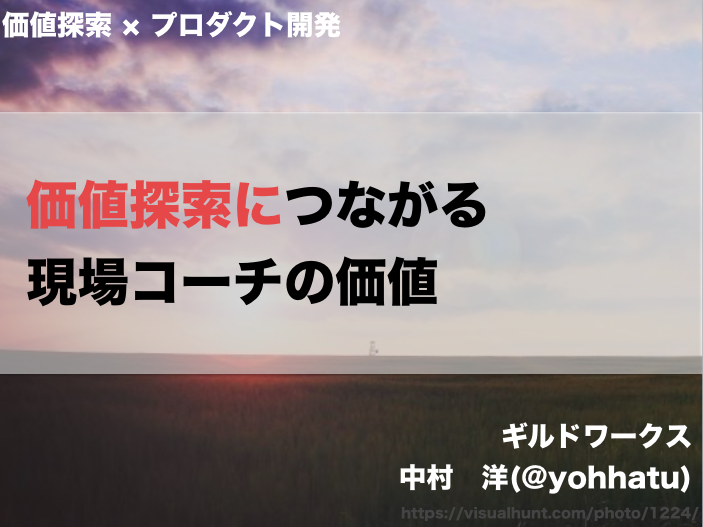 「価値探索 × プロダクト開発 -ギルドワークス事例発表- in 大阪」(https://guildworks.doorkeeper.jp/events/37555)でのスライド