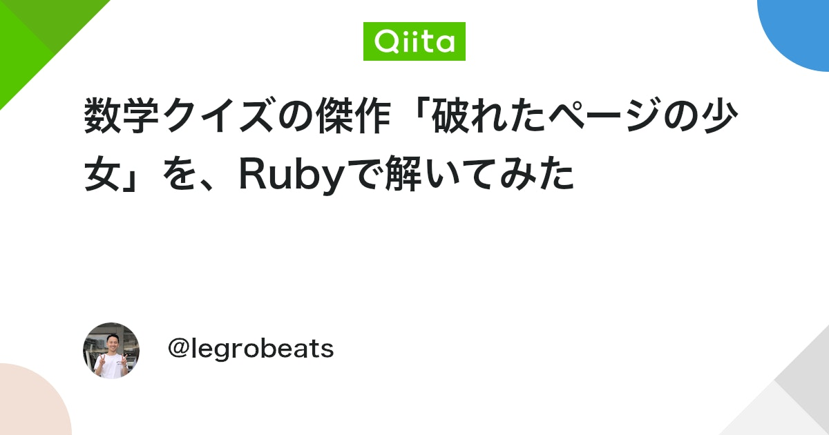 <Qiita> 数学クイズの傑作「破れたページの少女」を、Rubyで解いてみた