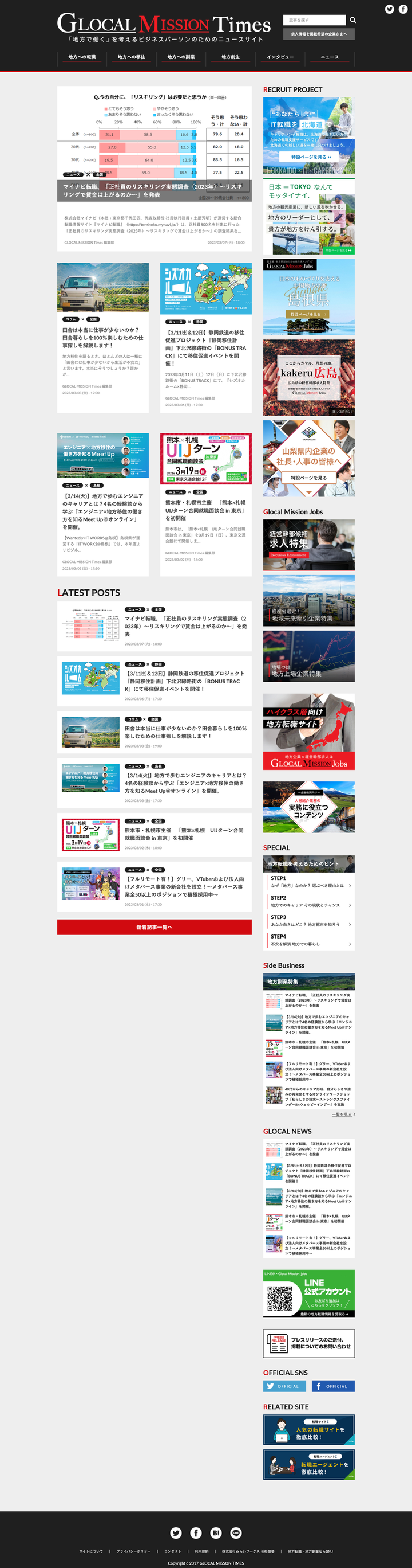 · オウンドメディア ディレクション ー 「地方で働く」を考えるビジネスパーソンのためのニュースサイト GlocalMissionTimesー 人材の首都圏一極集中を是非し、地方企業が人材の力で生産性を高め成長を遂げるための架け橋として、地方企業で活躍す