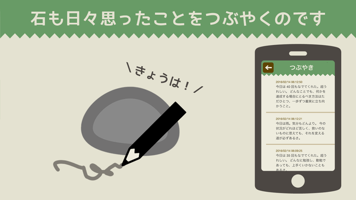 Hack Day 2016 の作品になります。 そこら辺にある石をセットするだけでペットになるという画期的なプロダクトです。 iPhone と Konashi をBLEでつなぎ、石が振動したりするようになっています。