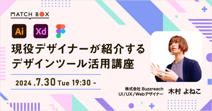 日頃マッチボックスユーザーの皆さま向けにデザイナーのスキルやTipsについてのセミナーを行わせていただいております。 その中で、制作の現場で使用するツールのキャッチアップやうまく使う方法、そもそもの選定などが難しく、現役のデザイナーがどんなツールをどのように使っているか知りたいというご要望を多くいただいておりました。 といった経緯から、「現役デザイナーが紹介するデザインツール活用講座」を開催いたしました。注目を集めるFigmaやAdobe XDをはじめ、定番ツールであるIllustratorを利用したデザイン作成例を具体的にお話しました。 セミナーレポートは下記に公開されております。 https://matchbox.work/report/design-tool-kimura