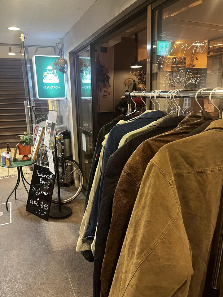 近所のクラフトビール屋で古着 × ビールのイベント時の写真です!
