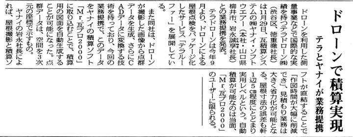屋根積算ソフト業界シェアNo.1のヤナイ・ソフトウエアー(岩永社長)との提携を記事にしていただきました。