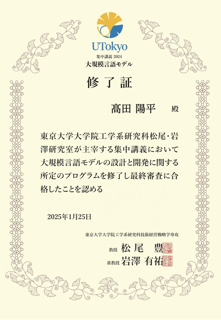 東京大学松尾研究室 / 大規模言語モデル応用講座修了生