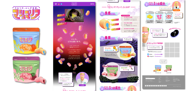 ■製作期間 5日間程度 架空のグミ菓子【マシュマリア】のロゴ・パッケージ・LPを自主制作。