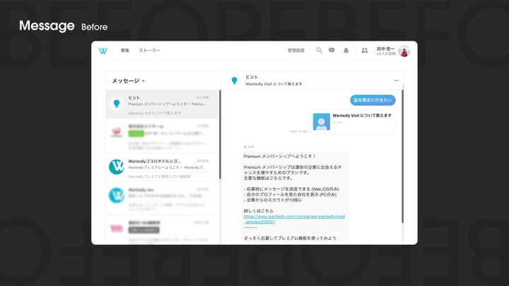 Wantedly.comのメッセージ画面のリノベを担当させて頂きました 設計背景はいつか記載します メッセージ画面の有料転換率がリノベ後に2倍になりました