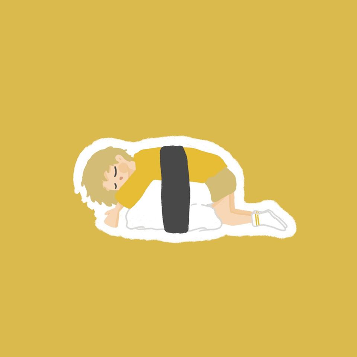 Procreate使用 私が作成したキャラクター「にんげんずし」のえび、たまご、いくらです。たまたま布団に転がったら服の模様と相まってお寿司になってしまった人間たちです。