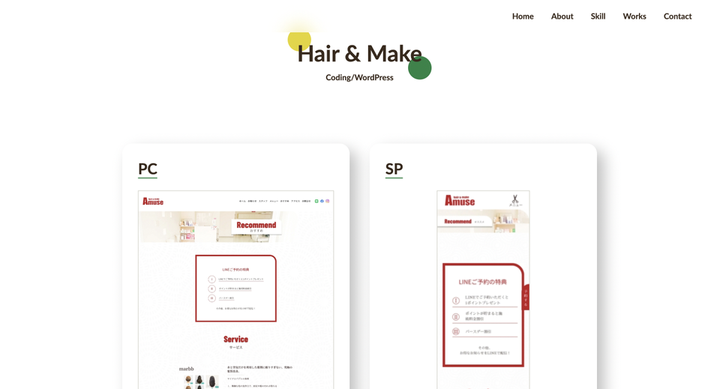 <プロダクト概要> 私のポートフォリオサイトです。企画〜サーバーへのデプロイまで行いました。WordPressの管理画面で追加、変更できるように実装。 <工夫した点> ・AdobeXDを用いたデザインカンプの作成 ・Photoshopを用いた写真の切り抜き ・VanillaJS、GSAPの使用 ・FileZillaを用いたデプロイ <使用言語・ツール> HTML,CSS,JavaScript,WordPress,GitHub