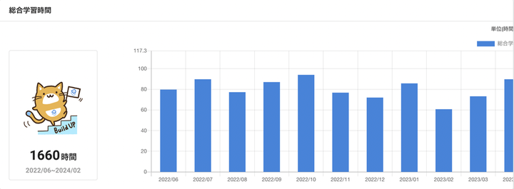 2022年6月よりオンラインスクールにて勉強しております。 仕事、家事育児の傍ら、毎日3時間の学習を580日間以上続けております。 学習した内容は必ず、学習記録ツールのBuildUpを使ってアウトプットしております。