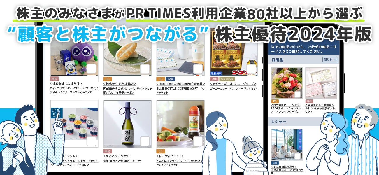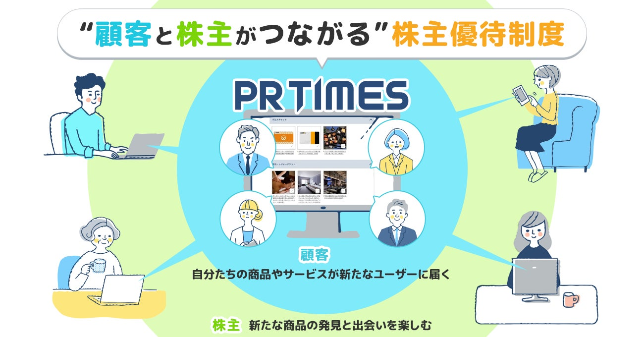 “顧客と株主がつながる” 機会を創出する株主優待制度を活用した取り組みの運営 ※株主の皆さまに「PR TIMES」のご利用企業の商品・サービスからお選びいただいたものを、株式会社PR TIMESが企業から購入し、株主さまへ進呈する取り組み