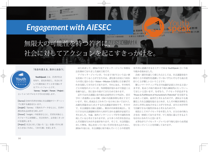 上述した55周年記念式典の参加者にお配りした資料です。 最近の活動について、理念や実績、直近5年の歴代代表の対談、OBインタビュー(ユーグレナの出雲さん)などを掲載し、40ページを超えるの冊子となりました。