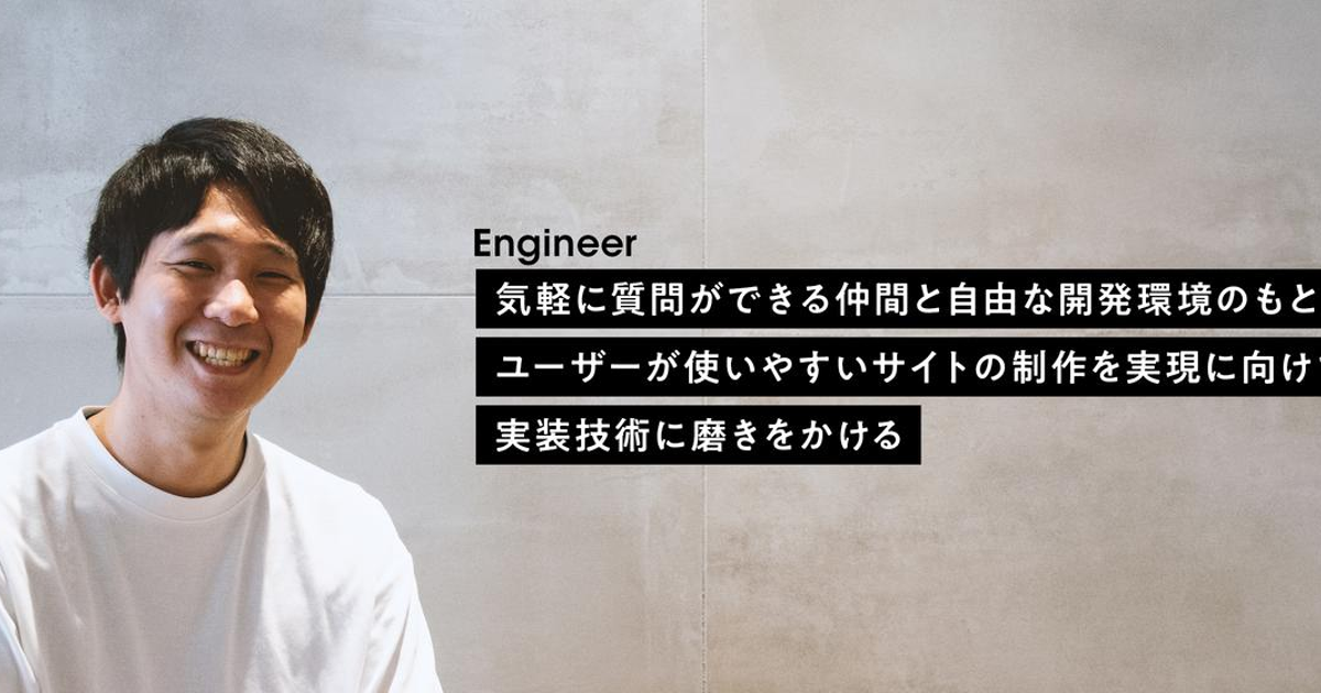 【社員インタビュー #11】気軽に質問ができる仲間と自由な開発環境のもと、ユーザーが使いやすいサイトの制作を実現に向けて、実装技術に磨きをかける