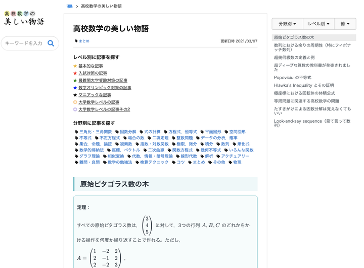 高校数学の美しい物語を学びTimesのサイト内に移転し、管理人様との共同運営を開始しました。 日本一の数学サイト!