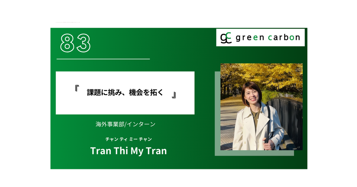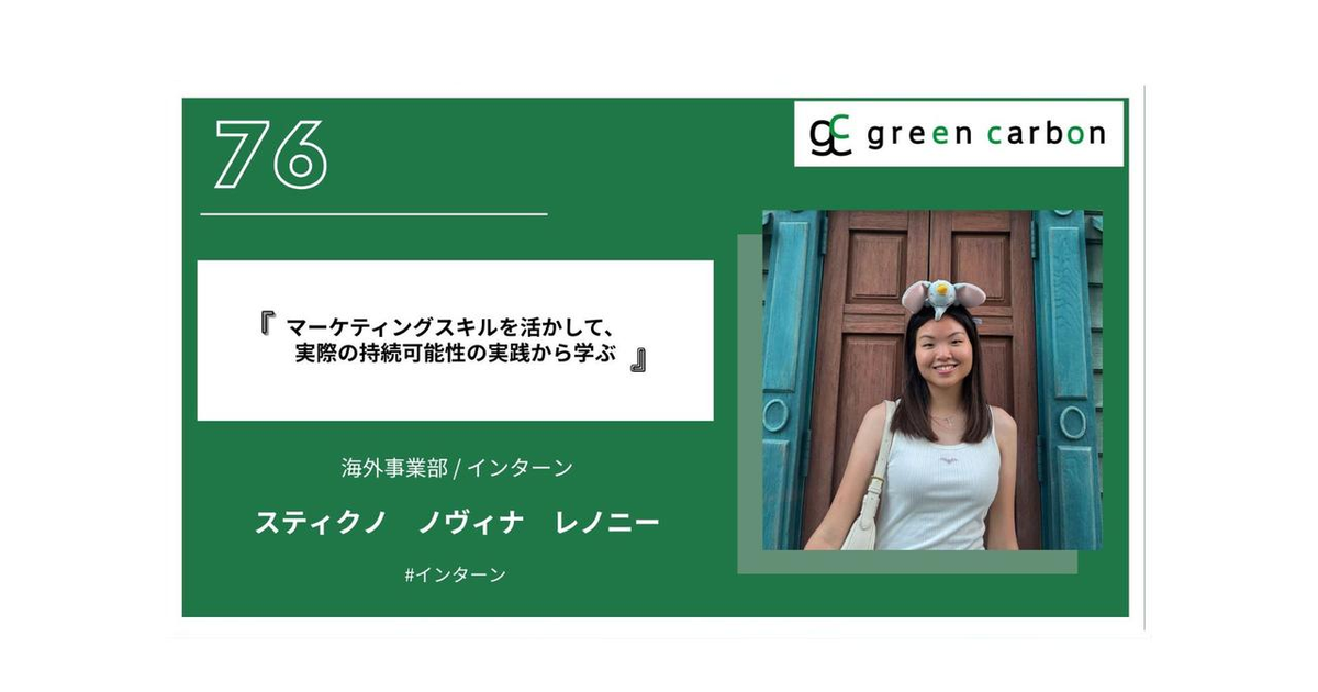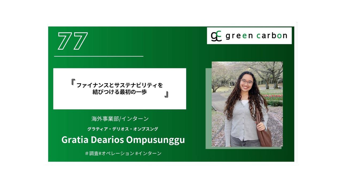 Green Carbon株式会社の前野です! 現在、学生インターンとして海外事業と広報を担当しています。 Green Carbonでは、国内外から多くの学生インターンが活躍しています! マーケット調査、方法論解読、フロント側の業務(外部とのコミュニケーションやイベント登壇)、広報な