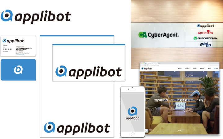 サイバーエージェントグループ アプリボット社、スマートフォン等の次世代端末を利用した情報提供サービスの企画・制作・運営企業。第二創業期に向けてコーポレートロゴのリニューアル、CI計画、スプラッシュロゴ・サウンドを担当。