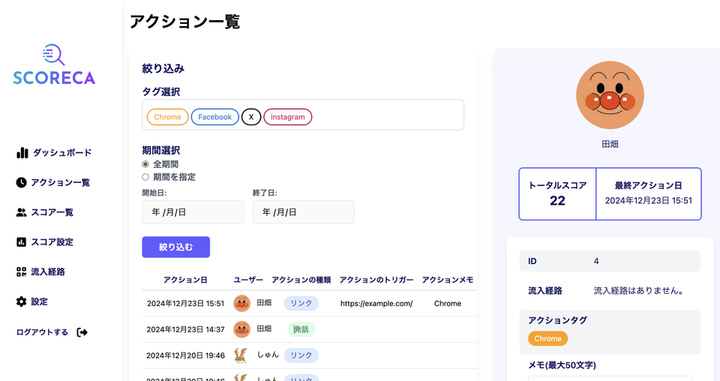 【案件の背景】 Webマーケティング会社様より、LINE公式アカウントを活用したスコアリングマーケティングツールの開発依頼をいただきました。LINE友達のアクション(リンククリックや発話)に応じてスコアを付与し、それをもとに管理者がユーザー行動を分析できる仕組みを提供します。マーケティング活動の効率化と効果測定の精度向上を目的としたプロジェクトでした。 【開発環境】 ・プログラミング言語:Python ・フレームワーク:Django 5.0.4 ・データベース:PostgreSQL ・フロントエンド:Tailwind CSS 【主な機能】 ・アカウント登録機能: メールアドレスとパスワードによるアカウント登録機能 ・ログイン機能: メールアドレスとパスワードによるログイン登録機能 ・スコアリング機能: 管理者がカスタマイズ可能なスコア設定機能 ・ダッシュボード: ユーザーのアクション状況やスコアランキングをリアルタイムで可視化 ・アクションに応じたタグ付与: 設定したアクションに応じてユーザーへタグが自動付与 ・アクション一覧のCSVダウンロード: ユーザーのアクション一覧をCSVでダウンロード ・各アクションに応じた絞り込み機能: タグ、アクション期間に応じて絞り込みを実装 ・流入経路管理: LINE友達追加時の流入経路の保存、QRコードの生成 【学んだこと・スキルアップポイント】 ・LIFFを活用したリンククリック時、流入経路のユーザー保存 ・Djangoの汎用ビューを活用した効率的な開発 ・Tailwndow CSSを使用したモダンなデザインの実装