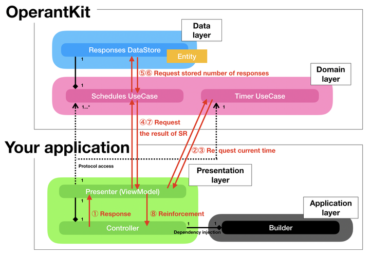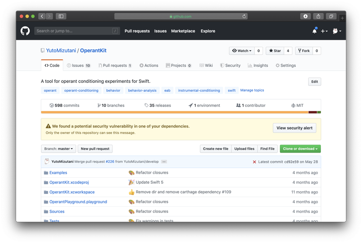 RxSwift と FreeOperant による継時手続きの相性は良いと捉え,OperantChamberApp のライブラリ化に努めた作品。 View以外の実験に必要な手続きをライブラリとして提供し,各オペランダムに対応するIOを指定するだけで簡単にプログラムを組めると謳った作品。 現在はネストした Delayed matching to sample 課題に適応できない問題を解決するため,これまで RxSwift に任せる形であった設計から,強化スケジュール自体を Reactive に相当する親クラスに割り当てることで解決するように変更中 ( https://github.com/YutoMizutani/OperantKit/pull/227 )。 技術: CocoaPods, RxSwift, Bitrise キーワード: 行動分析学, 行動実験, 実験補助 プログラミング言語: Swift 5 (3~5) 利用ライブラリ: RxSwift