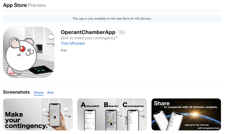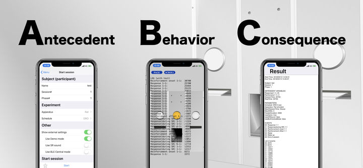 行動分析学を学び,それを動物用,ヒト用,療育用に用いられるアプリ。 Android版のコンセプトを引き継ぎつつ,BLEによる実験用パソコンの代わりにプログラムを実行できる機能や,実験後のデータをアップロードする機能など,見た目も機能も大幅に進化した。 UI,処理速度,メモリにも配慮。RxSwift,Clean Architectureを使用。 (本アプリは慶應義塾大学にて実施された第25回行動数理研究会にて講演を行なった。) 当時 RxBluetoothKit が Peripheral に対応していなかったため,RxBluetoothKit で Central, BlueCapKit で Peripheral の通信を行なった実装はつらいものがあった。 技術: Bluetooth LE, CocoaPods, RxSwift キーワード: 行動分析学, 行動実験, 実験補助 プログラミング言語: Swift 4 (3~4) 利用ライブラリ: RxSwift, RxBluetoothKit, BlueCapKit, Charts, Realm, SwiftyDropbox, Eureka等