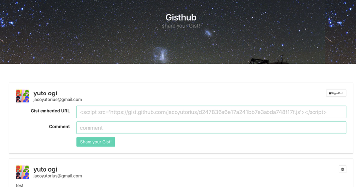 Gistのコードを共有するサービス。 Firebase + Nuxt.js (SSR) で実装。Heroku上にデプロイ。