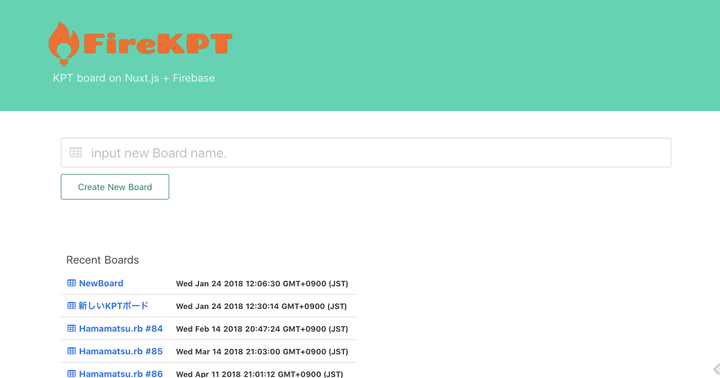 ブラウザ上でKPTをするためのサービス。 Firebase + Nuxt.js で実装、ホスティングはAmazon S3。