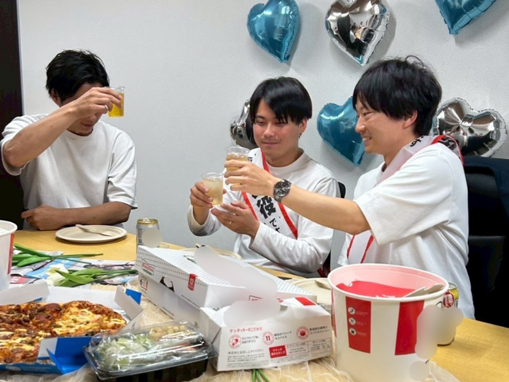 新しく入社した僕たちのために、歓迎会を開いてもらいました🌸 仕事終わりに装飾なども準備してくれ、感謝です😭✨ 皆さんといろんなお話ができて楽しかったです🎶