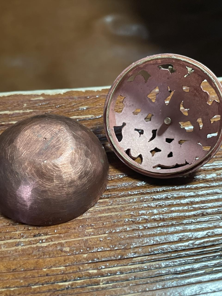 鍛金・彫金など金工技術を使った香炉の作成。 本体は、1枚の板から作り、鳥の部分はロストワックスという鋳造技術を使っています。