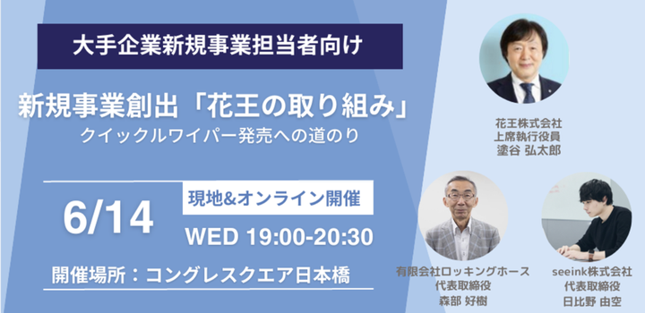 ロッキングホース 代表 森部氏 花王 執行役員 塗谷氏と共に新規事業登壇を行う 当日は100名の方々に参加をいただいた