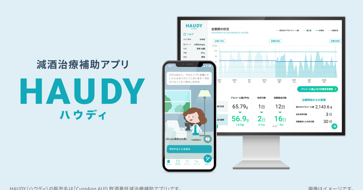 減酒治療補助アプリ「HAUDY(ハウディ)※1」を2025年9月1日に販売開始 ~アルコール依存症治療領域で国内初※2の公的医療保険適用(予定)~