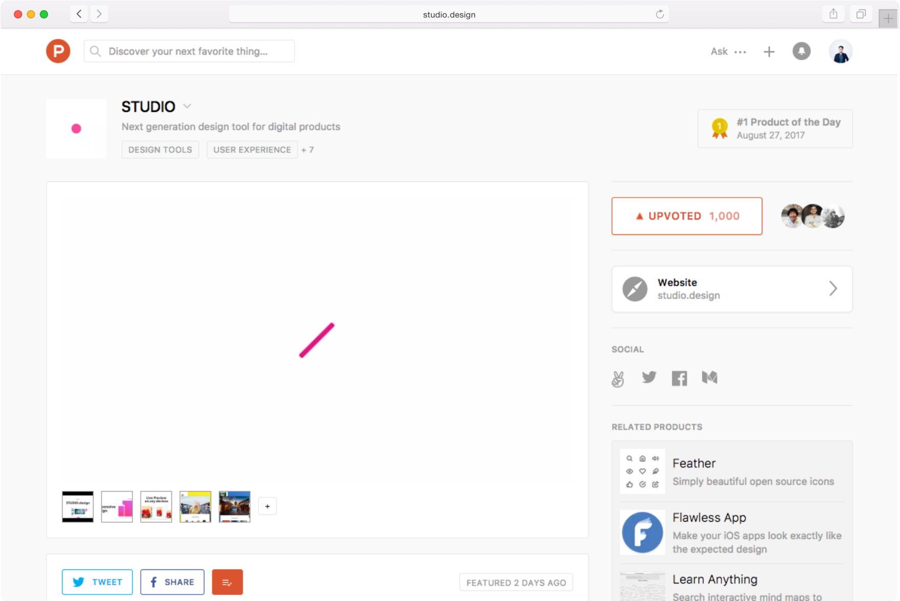 世界中の優れた新規サービスを集めたWebサイト「プロダクトハント」にて、日本のスタートアップ企業で初めてとなる世界1位を獲得。グローバルでも注目されているサービス。