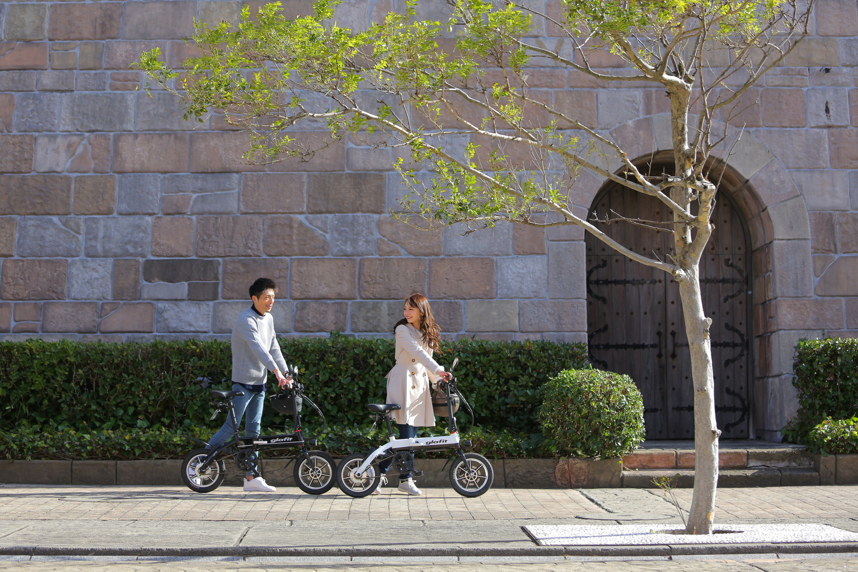 glafitバイクは、「人々の移動をもっと便利で、快適で、楽しいものにする」というビジョンのもとつくられた、足漕ぎペダルの付いた原動機付の電動バイク(ハイブリッドバイク)で、折り畳ことができ持ち運ぶことも可能な、新しい乗り物です。