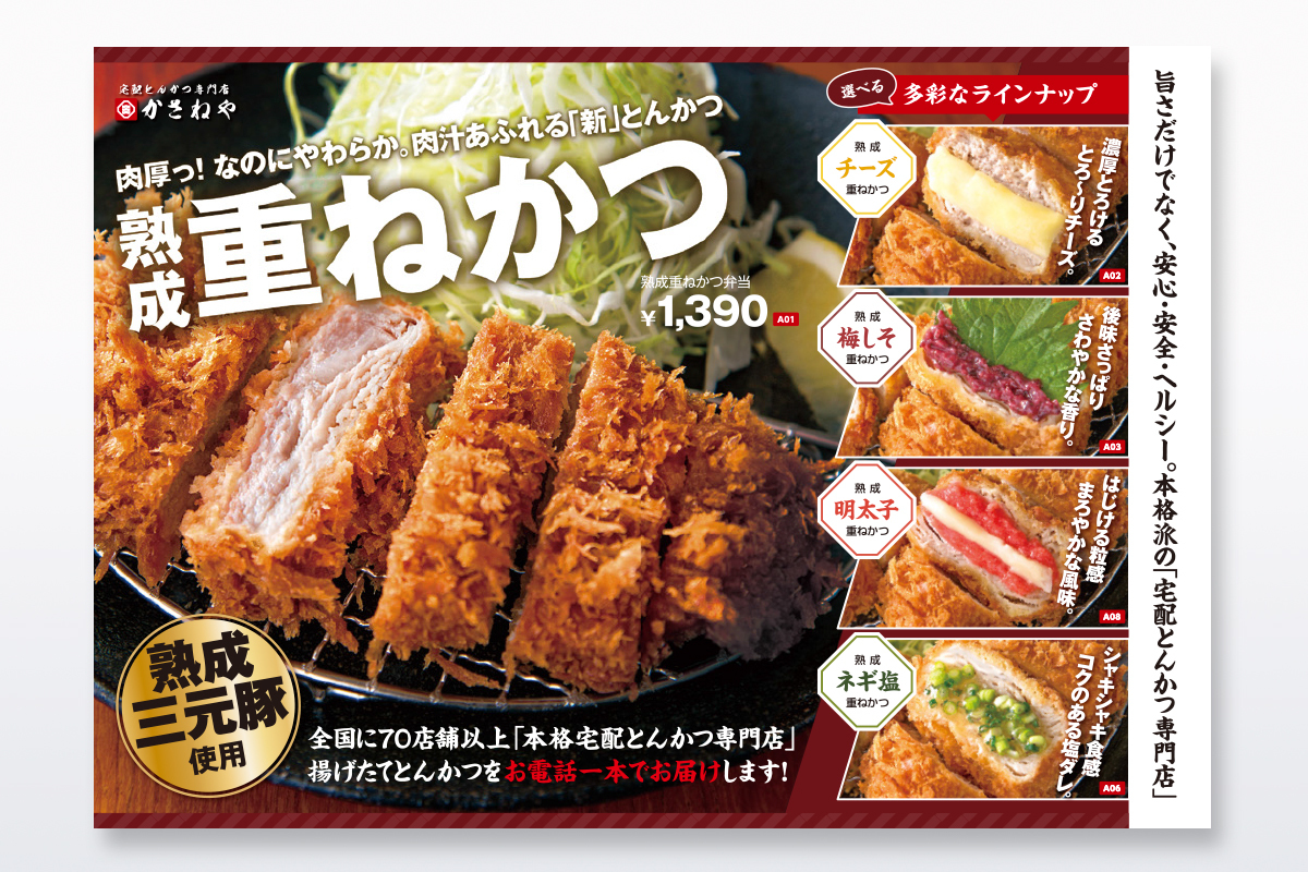 『宅配とんかつ専門店 かさねや』のデリバリー用チラシを制作しました。