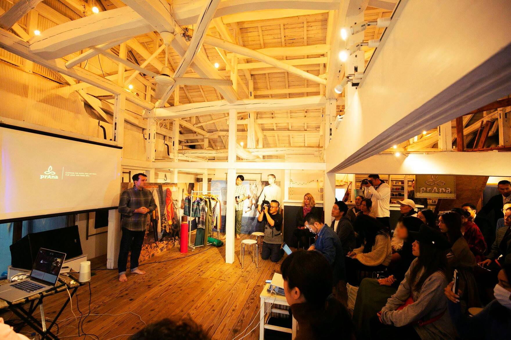 The lifestyle brand "prAna" from Southern California, which introduces clothing apparel that is environmentally-friendly and made with sustainable material, held a launch party in Hayama to celebrate their new Japanese e-commerce site. Jeff Haack, prAna's VP of Brand Marketing, and photographer Chris Burkard visited from California for the event. There was a presentation about the concept and positive attributes of "prAna," and the second-half of the event after the presentation was moved to Hayama Park, where a yoga session was held. It was an event that truly embodied the lifestyle of "prAna," as attendees enjoyed yoga and a sunset dinner, all while being enveloped in comfortable clothing.
