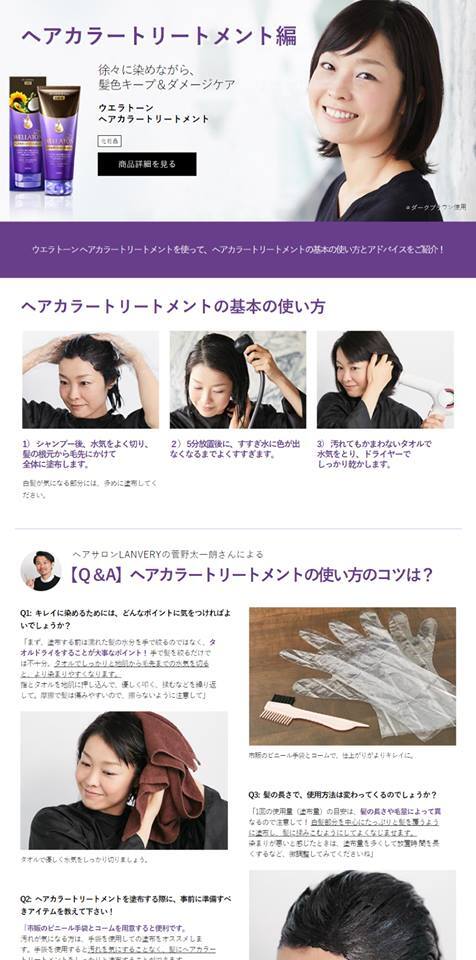 サロン生まれのヘアカラーブランドであるWELLA(ウエラ)が、白髪ケア商品の基本的な使い方と、ヘアサロンLANVERY代表の菅野太一朗さんからのアドバイスのもと、自分で上手に染めるコツをWEBサイトで紹介しています。